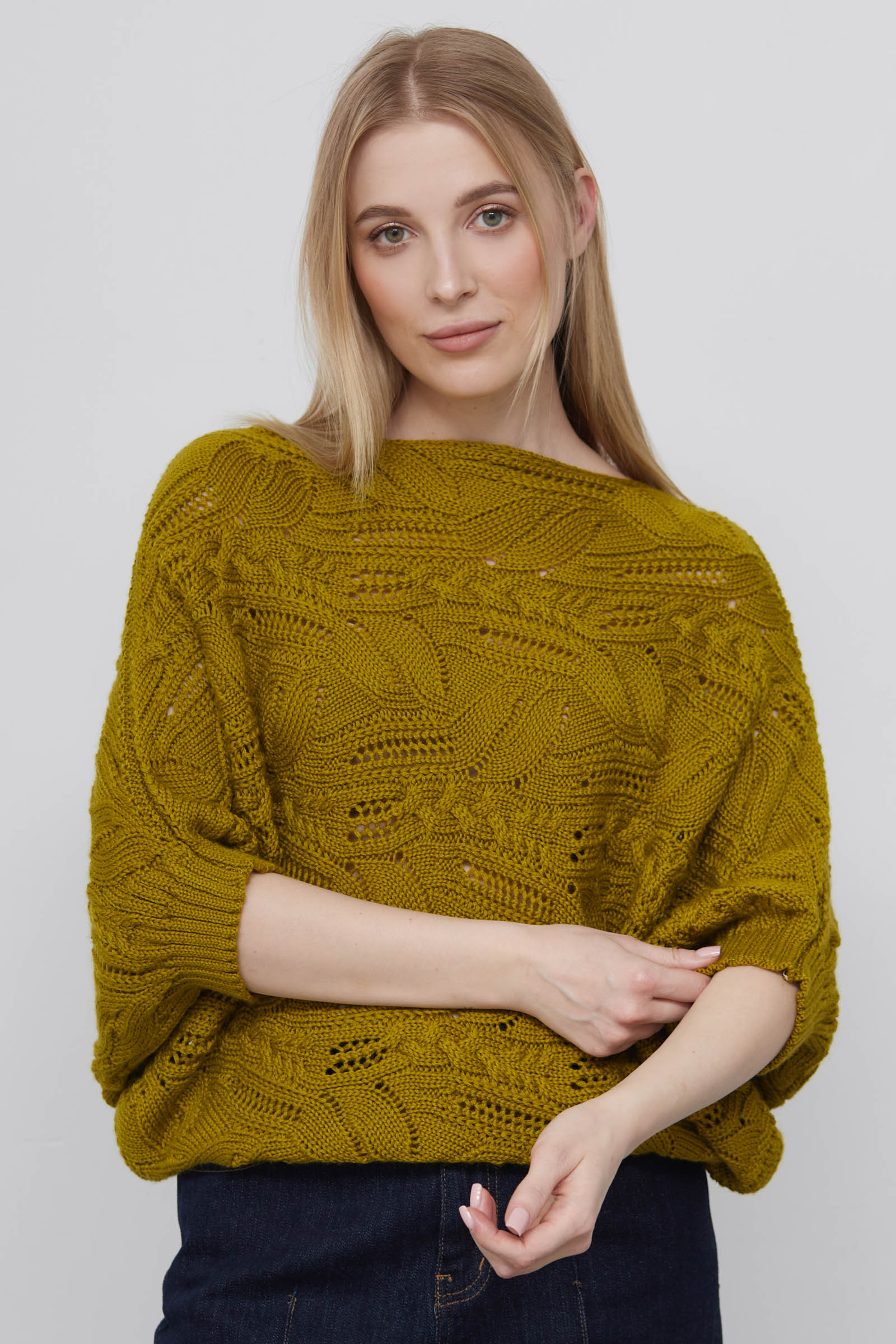 Жилет кокон oversize ажурной вязки из смесовой шерсти.