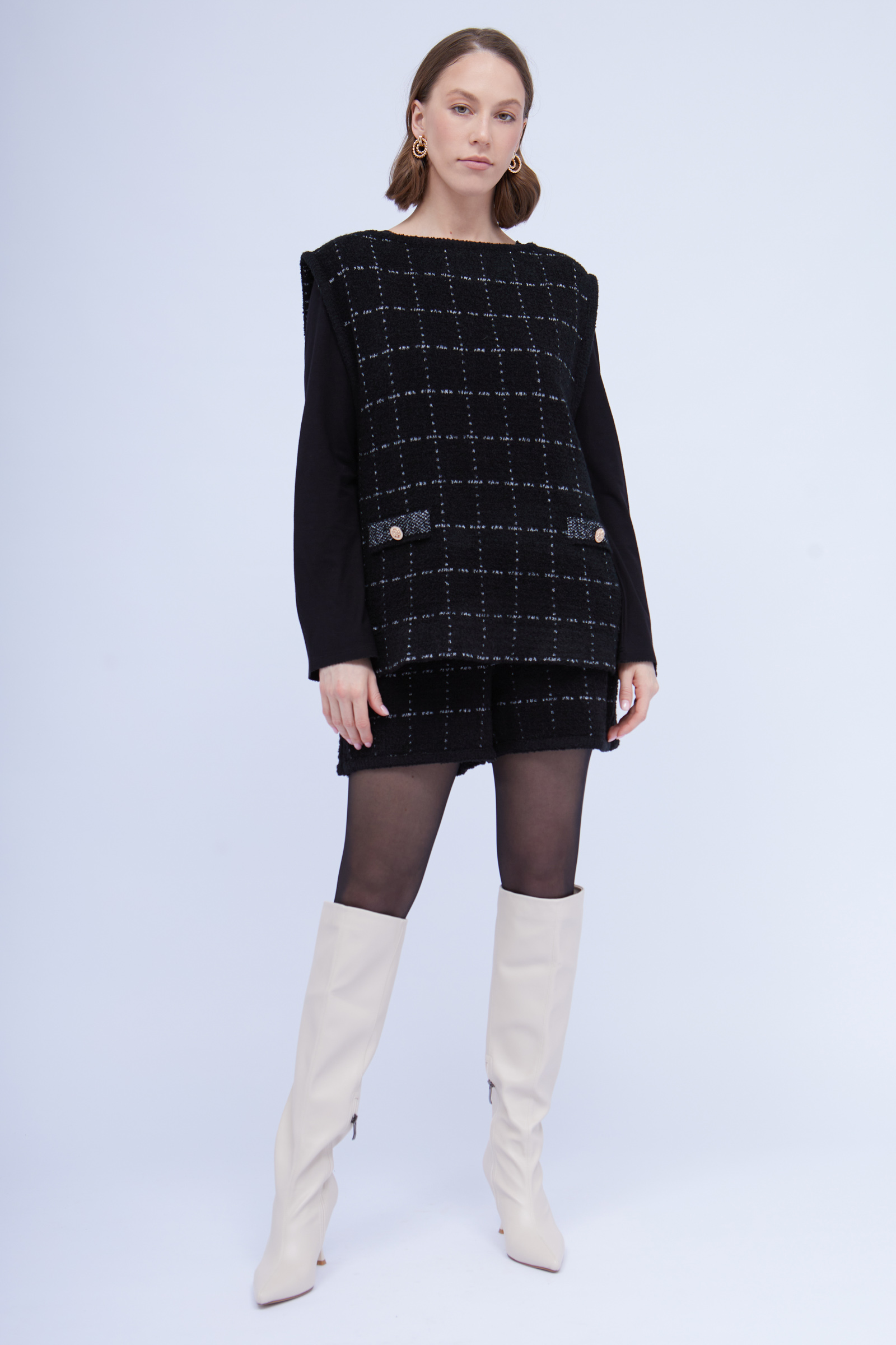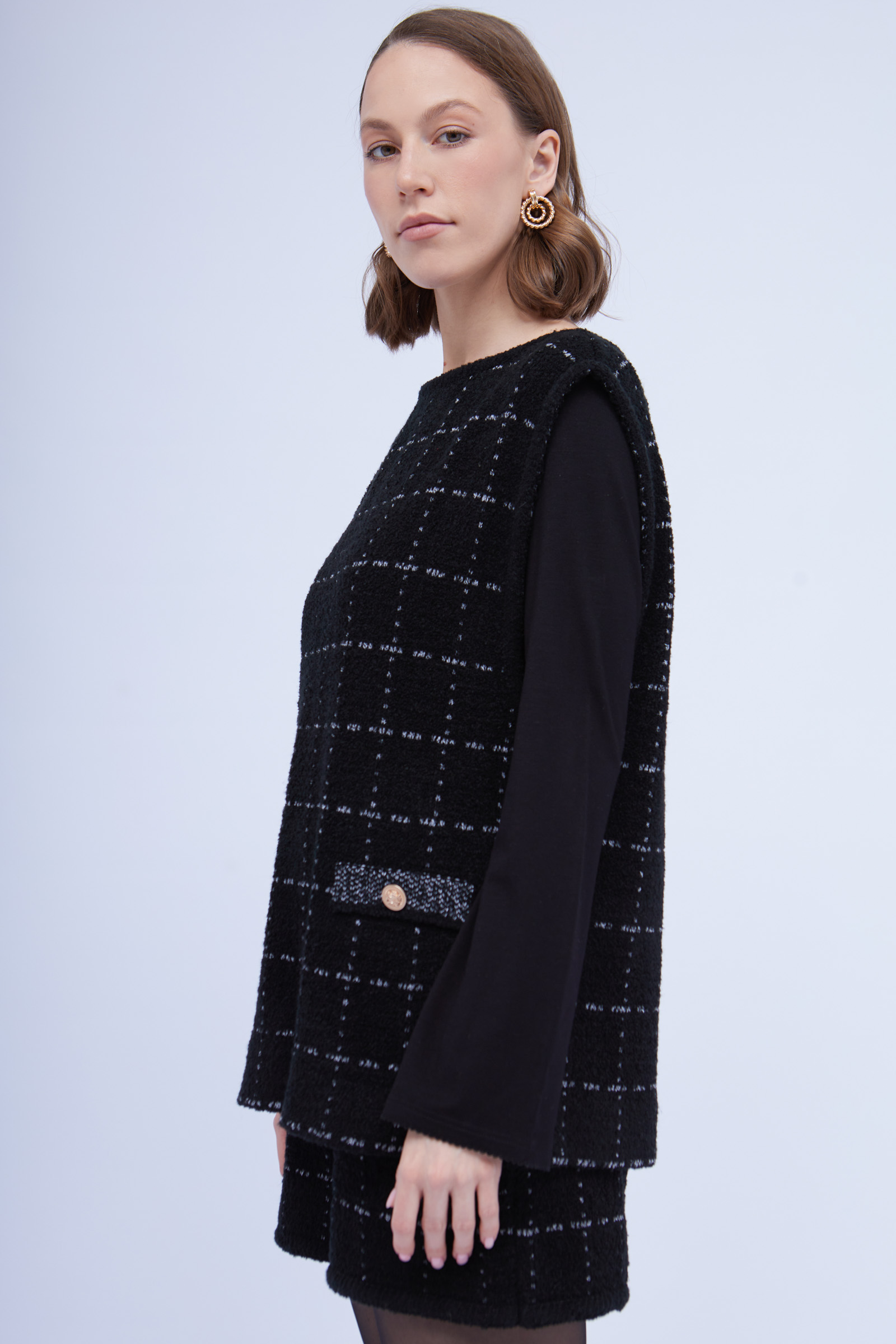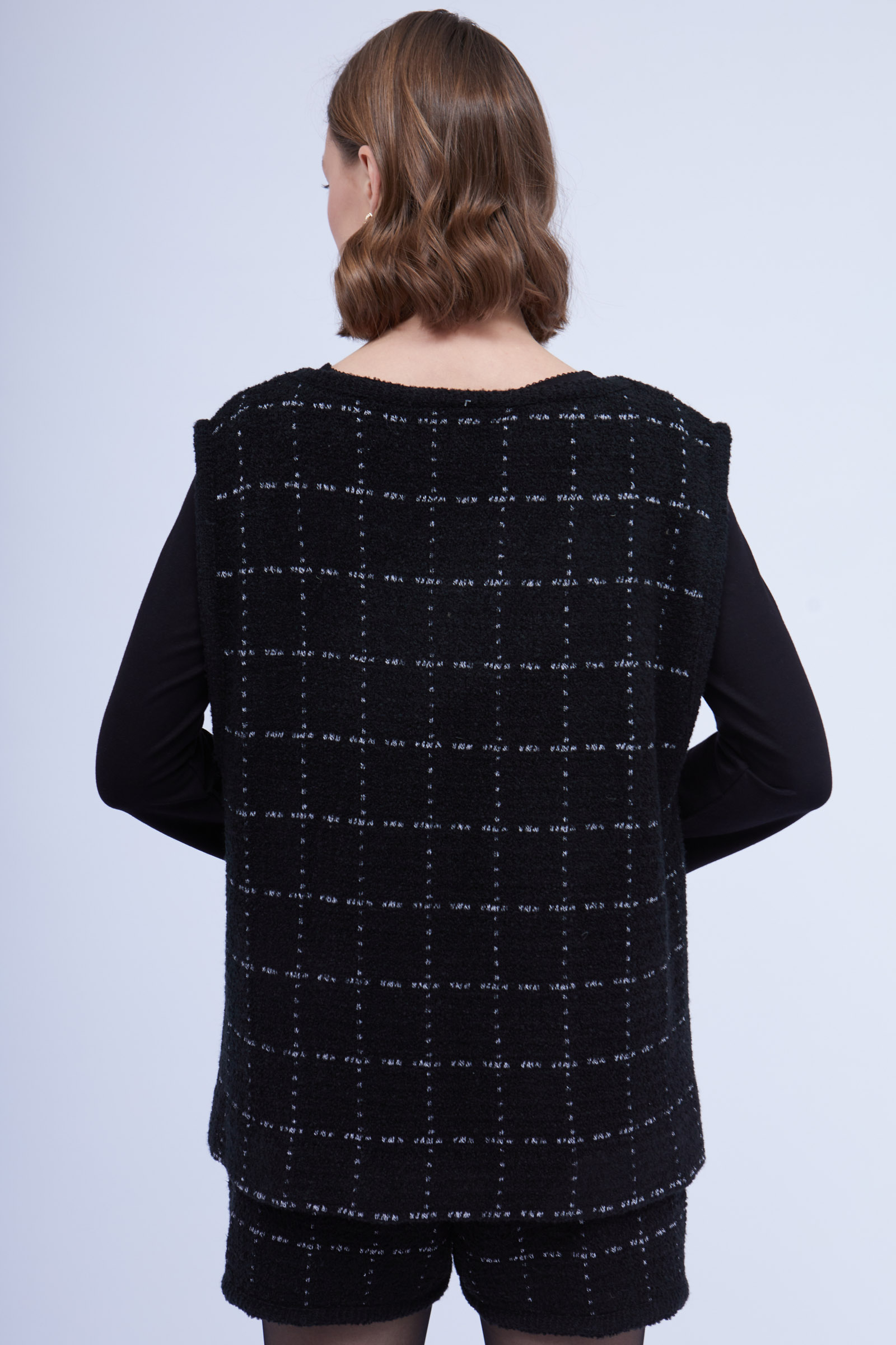 Жилет oversize из буклированного трикотажа в клетку.