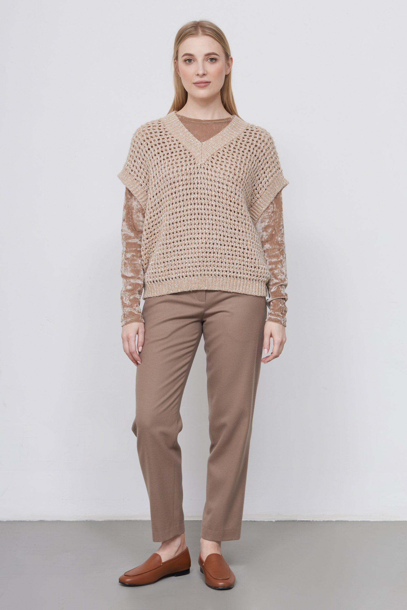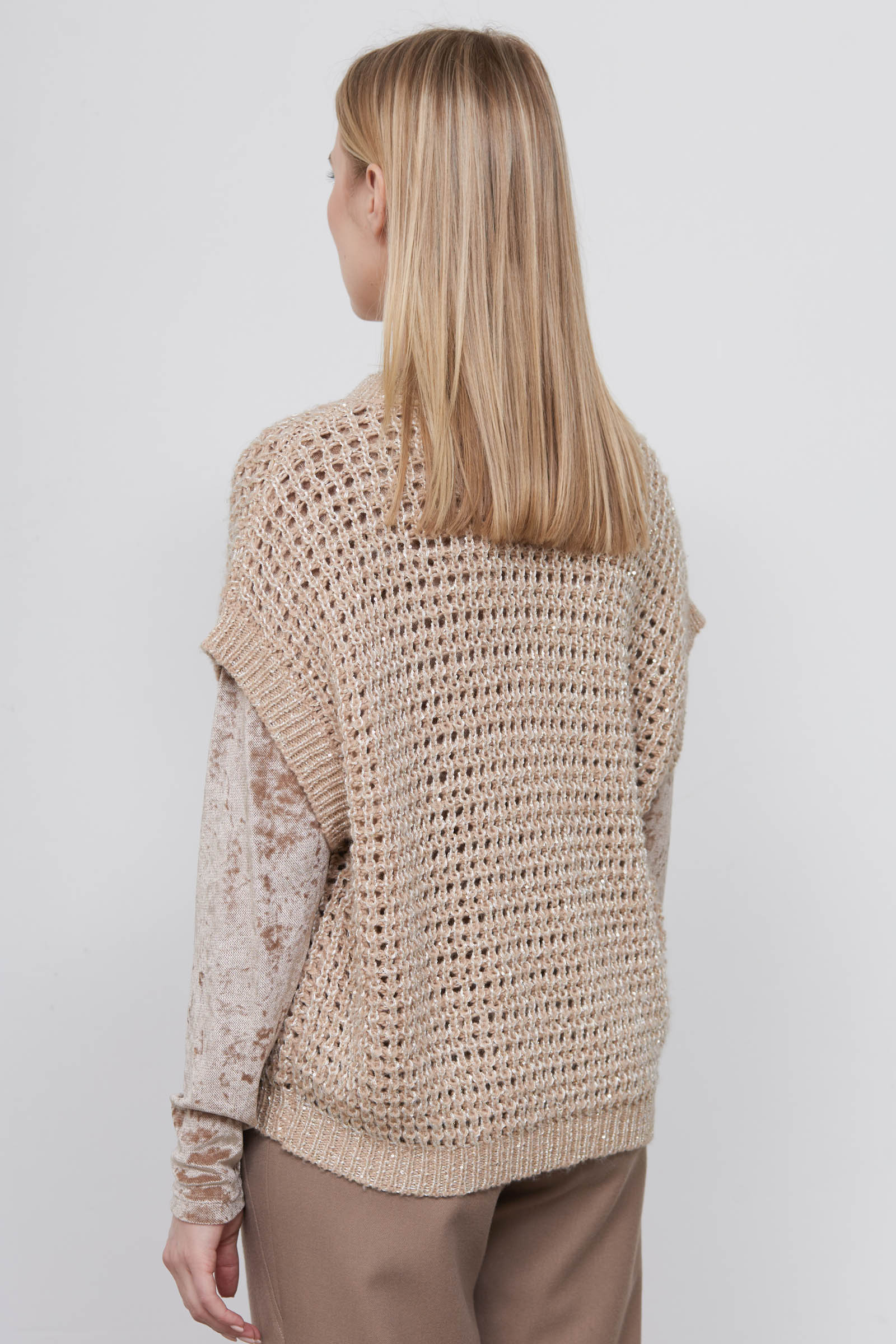 Жилет oversize крупной ажурной вязки с люрексом.