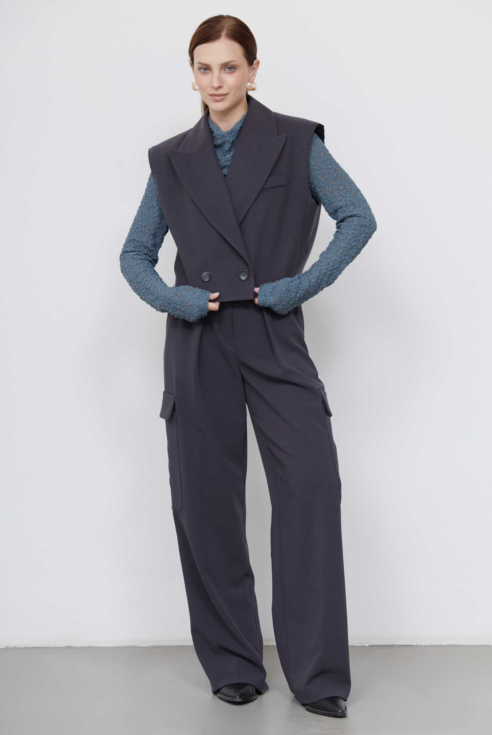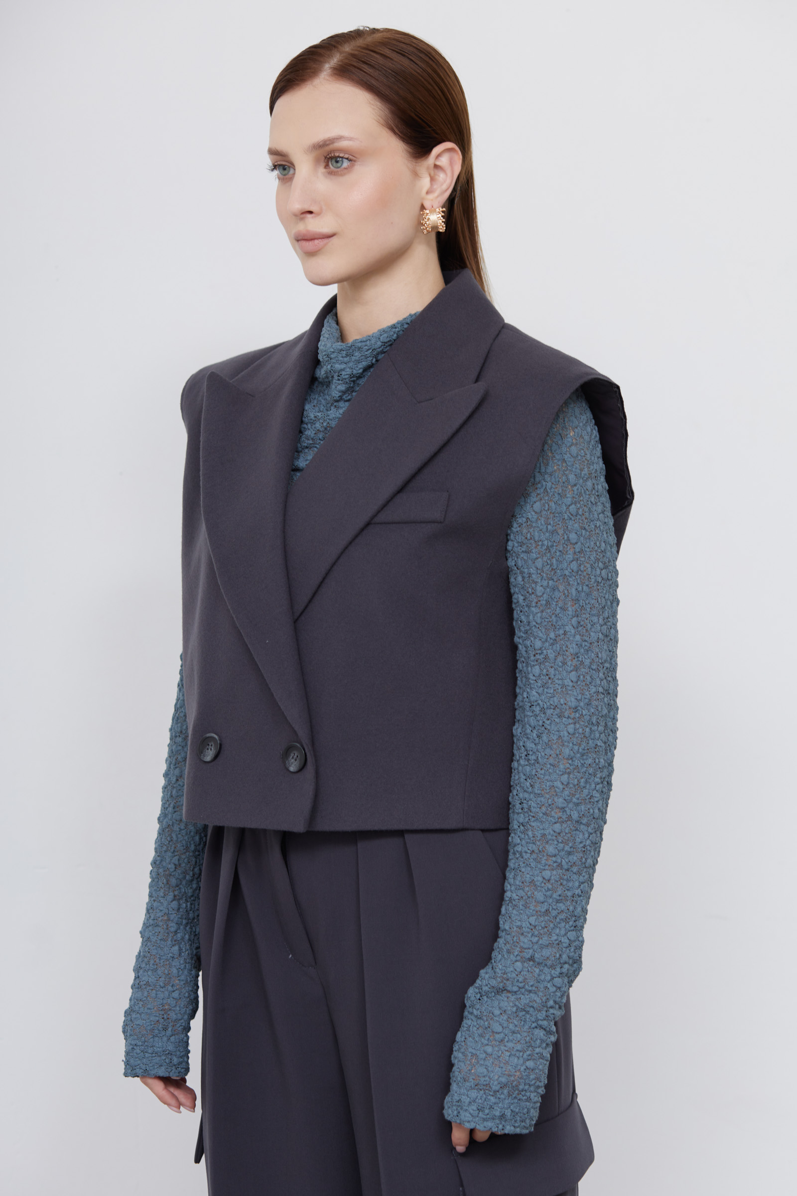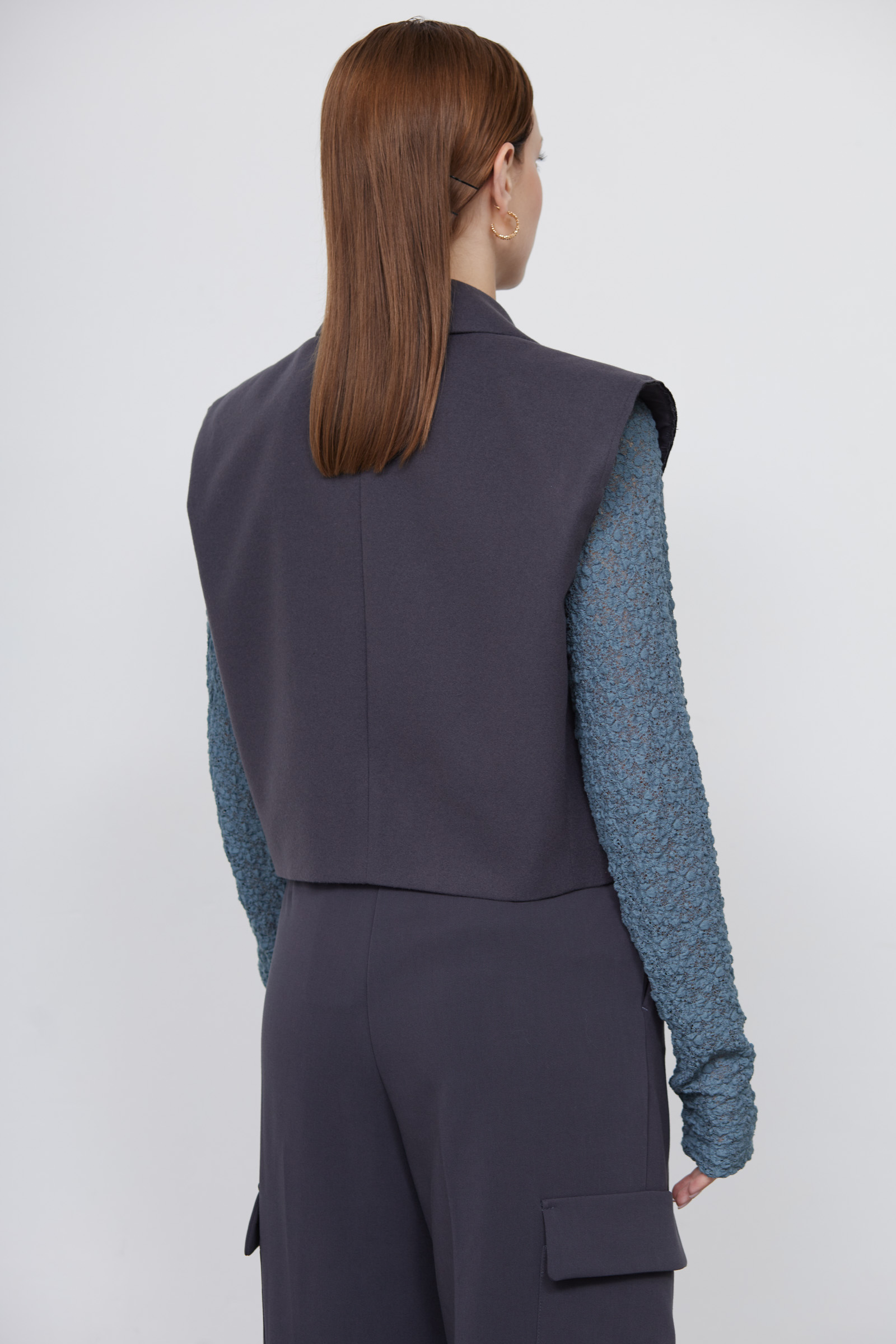 Укороченный костюмный жилет из поливискозы с мягкой фланелевой текстурой.